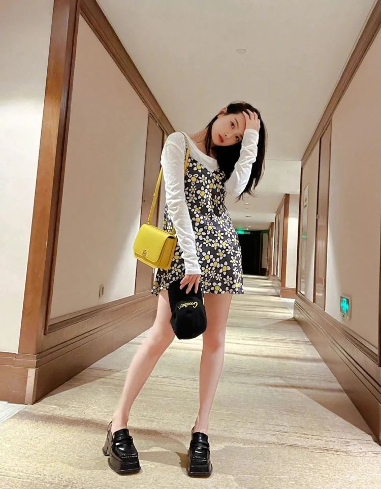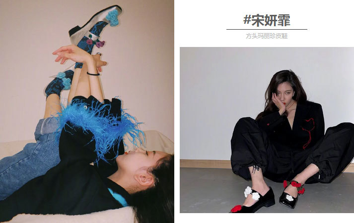 同理方头玛丽珍鞋的翻红,显然也是顺势而为,特别是再加上厚底这个细节,从气质上彻底颠覆了原本的模样,文艺女孩瞬间变身暗黑少女,即使是像宋茜这样一身碎花也不影响。