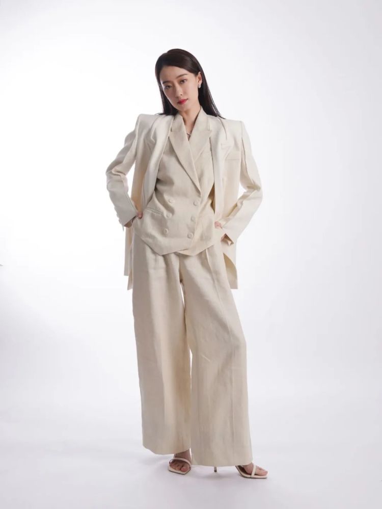 张小斐西装+凉鞋在一众裙装look众显得与众不同,方头凉鞋利落简约,独特而强势,这一抹清爽感飒了爱了。