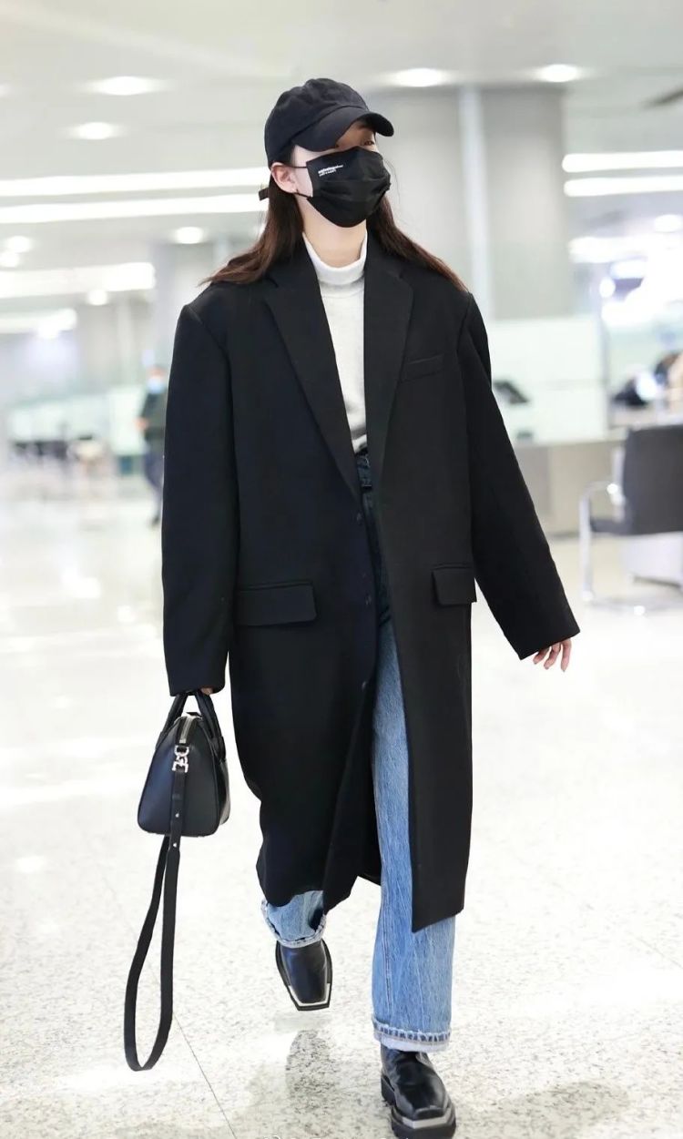 李菲儿用毛呢夹克搭配黑色方头鞋,jiojio变时髦的秘诀已经被找到,既可复古摩登,也飒帅甜酷。目测这股方头力量将持续发力,乃至秋冬季季末。