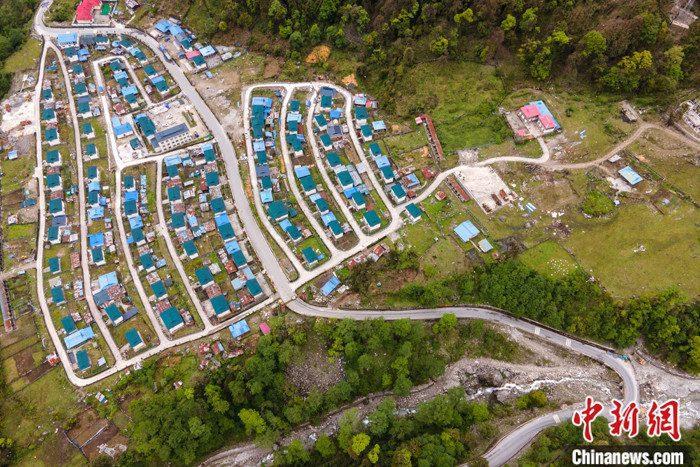图为5月16日,西藏墨脱公路上的达木珞巴民族乡贡日村景象,该村此前为旧墨脱公路物资转运点,被称为“80K”。(无人机照片) 中新社记者 江飞波 摄
