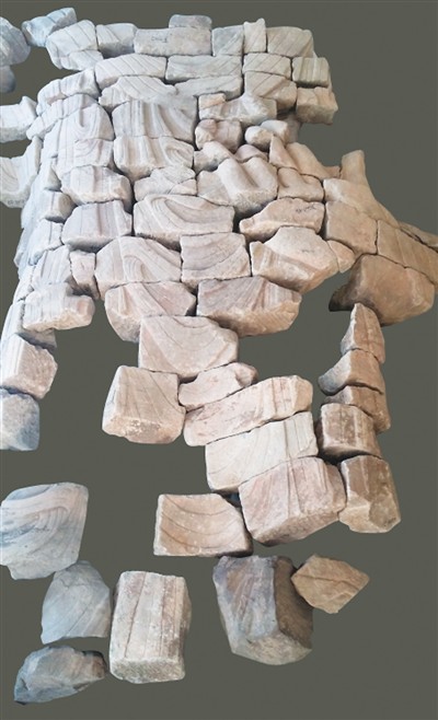 研究者依据考古发掘出的残片,对第20窟西壁立佛碎块拼对组合初形。