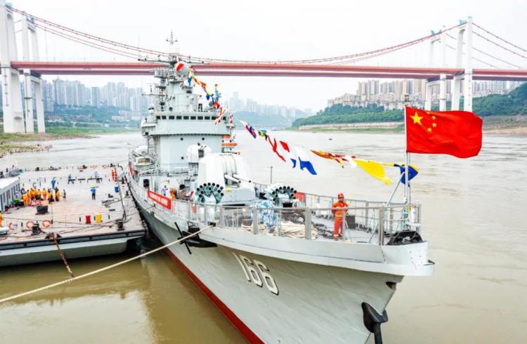 6月26日14时30分左右,在万众瞩目与热切期盼中,历时302天、4000余公里航程的166舰,终于顺利抵达重庆市九龙坡区建设码头。