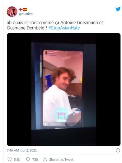 这段长约42秒的视频显示,亚裔面孔的工作人员当时正在查看电视情况。《南华早报》称,期间登贝莱似乎对格里兹曼说:“所有这些丑陋面孔(的出现),只是为了让你玩实况足球,你不感到羞耻吗?”他还说,“这是什么落后的语言?”“你们的技术在你们国家里算不算先进啊 ?”