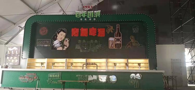 作为2022北京冬季奥运会官方赞助商,青岛啤酒首次把冬奥元素搬进了啤酒大篷,15米超长半透明冰感吧台,动感灯光与舞台音乐形成互动,啤酒完美融入冬奥竞技项目创意展示,让打酒也变成视觉享受。