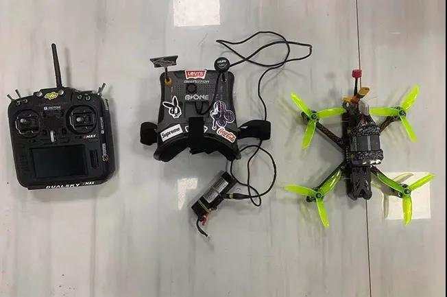 发现此情况后,王刚林立即上报综合指挥室,同步周边巡逻警力开展搜寻。很快,操控无人机的男子黄某某被控制,警方缴获无人机一架、FPV眼镜一副、遥控器一个。