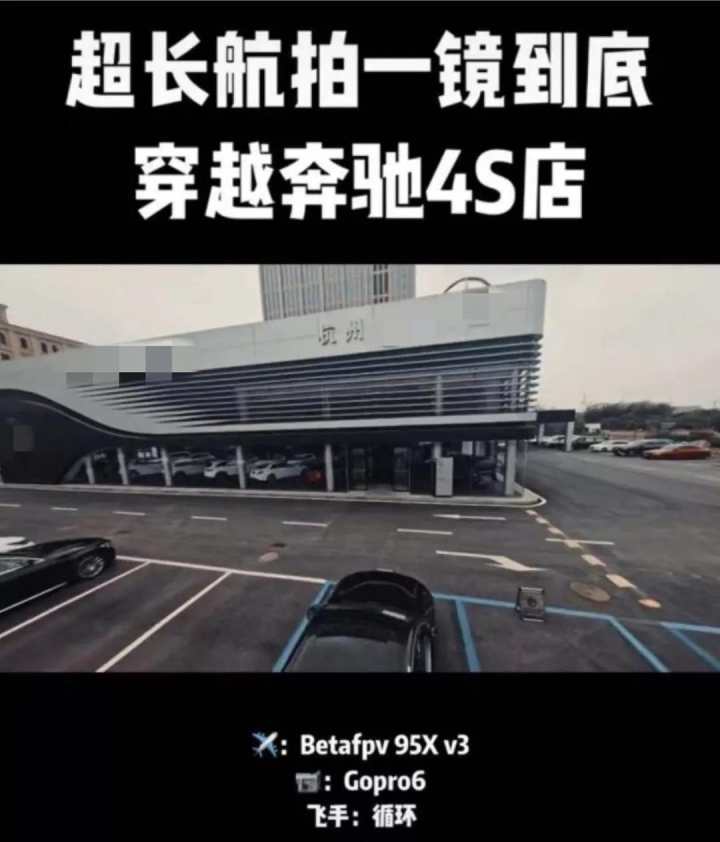 除了航拍,还用无人机穿梭在4S店内部进行超视距拍摄,相关视频经过剪辑后上传短视频平台。