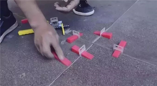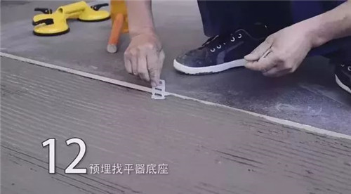 找平处理:在已定位好的大板边缘周围,每60cm左右插入找平器底座,检验平整后插入找平楔子并夹紧找平器,调整相邻大板的表面平整度,并将大板间隙调整为2mm左右,以便后续美缝剂处理。