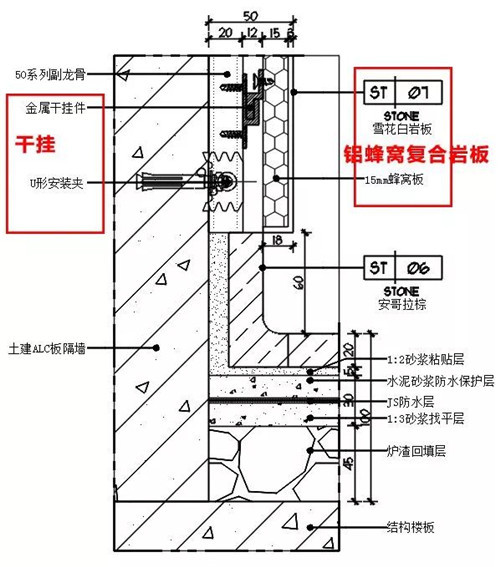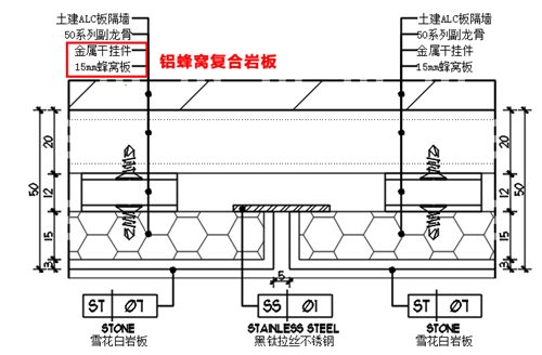 铝蜂窝复合,主要可以增强岩板抗折和可连接性,能大幅度降低大规格板重量,干挂安装同一般石材干挂类似。