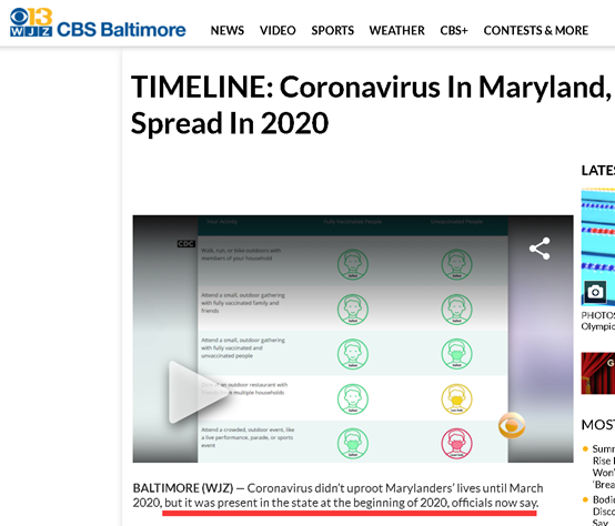 最后,根据美国CBS新闻网在马里兰州巴尔的摩市的地方台的报道,虽然美国马里兰州的首个新冠病例是在2020年3月才“被发现”的,但当地官员怀疑疫情可能在2020年伊始就已经出现了……