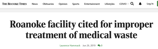 然而,这家医用废品处理公司在美国弗吉尼亚州罗阿诺克市的分公司,曾因为处理废品时存在严重的违规问题,于2019年同意向当地政府缴纳了13.68万美元罚款。