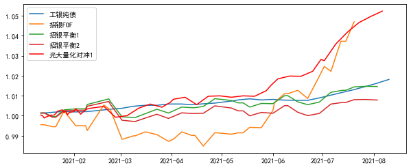 下图是以2021/1/12为统一起始日,五只产品的历史复权净值表现情况。在今年市场大幅波动的情形下,光大量化对冲产品表现较好,在较好的风险控制中实现了收益的稳健增长,工银纯债对冲净值增长平稳,招银量化对冲FOF产品风险控制水平存在一定波动,但整体走势向好。