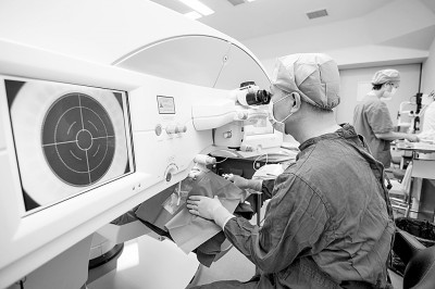 中山大学中山眼科中心主任余克明在给近视患者做全飞秒手术。中山大学中山眼科中心供图