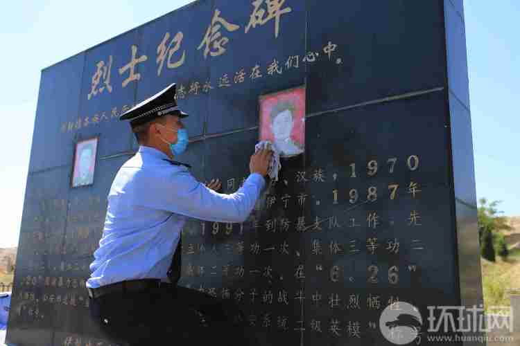 除草、擦墓碑、列队……民警们显然对这里已经很熟悉,伊犁州公安局警务保障处处长王新利当年是龙飞的副分队长,他对《环球时报》记者说,每年当地公安系统都会来这里举行集体祭奠活动,“我每年清明雷打不动地来。”