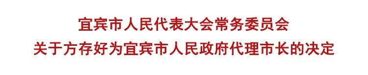 根据宜宾市人大常委会主任会议提名,宜宾市第五届人民代表大会常务委员会第四十五次会议决定:方存好为宜宾市人民政府代理市长,报宜宾市第五届人民代表大会第六次会议备案。