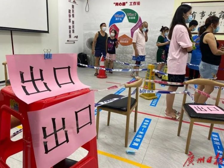 4日晚,广州日报·新花城记者了解到,东海大厦周边的越秀区建设街、登峰街、华乐街、洪桥街等正在有序开展居民核酸检测,居委会工作人员指引陆续来的市民进行采样检测。