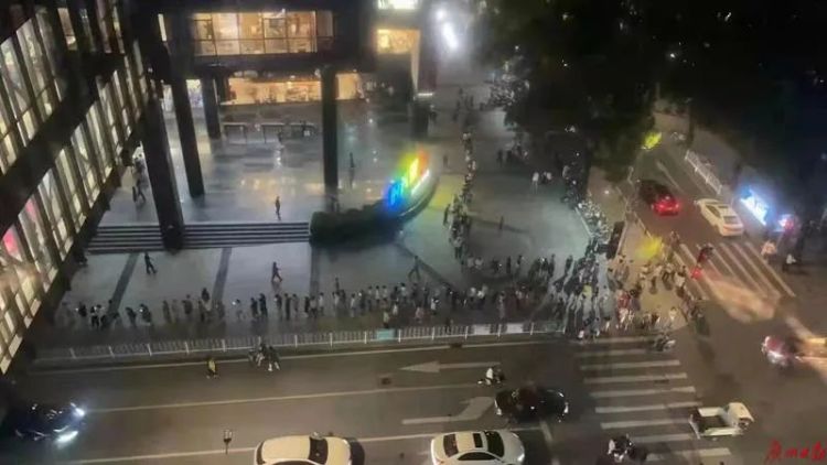 南华西街最早启用的全街全员核酸检测点设在天誉半岛,傍晚时分已经投入使用。晚上19时有不少居民吃过晚饭后就前来进行核酸检测。大批医务人员和志愿者在现场支援,尽管前来进行核酸检测的居民不少,但秩序井然。