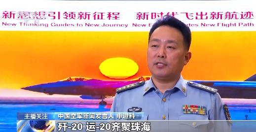 中国空军新闻发言人 申进科: 本届航展,歼-20、运-20齐聚珠海,空警-500、轰-6K静态展示,歼-16D、无侦-7首次展示,“八一”和“红鹰”两支飞行表演队共舞蓝天。
