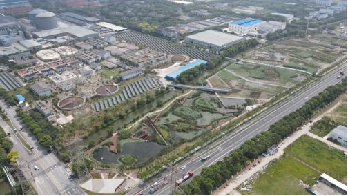 为此在2019年3月, 总投资1.52亿元的太仓市港城组团污水处理厂配套生态安全缓冲区开工建设。项目位于港城组团污水处理厂西侧,总设计水量为30000吨/天,建设总规模11公顷,湿地有效面积10公顷,包含7.2公顷潜流湿地,1.9公顷表面流湿地,0.92公顷沉水植物塘。湿地由20组并行的复合垂直流湿地、4组梯田式潜流湿地组成、1个多级表面流湿地和1个沉水植物塘构成。由南向北依次排布。湿地总进水管布置在湿地区西侧,污水处理厂尾水经生态湿地深度净化后,出水经集水区汇集后由设在北区东侧的总排口进入六里塘,再经东部的隋塘河,进入南部的新塘河。该项目建成以来,将污水处理厂水质提标至地表Ⅳ类水标准,不仅削减入长江污染负荷,同时干净水源补充区域地表水体,改善了水环境质量,具有明显的环境效益。