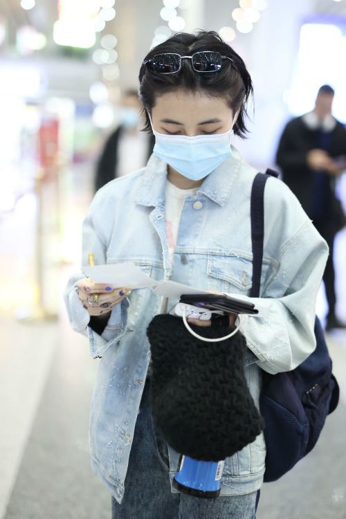 同样偏爱长款美甲的还有吉克隽逸。裸粉色的美甲,看起来就比碧梨的柔和多了。
