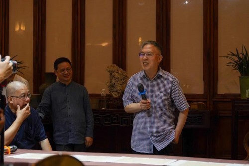 各位前辈,各位艺术家,我今天觉得特别开心很有缘分,认识了一些朋友,人生的缘分就是说不清,今天我们能够聚在一起雅集,这就是一种缘分。也都是最近认识的,见到大家都是各地来的武林高手,当然我们是另外一个行业,我们就坐在旁边看,欣赏、感受,特别特别的好。我记得我自己在学戏剧的过程中,永远最开心的就是跟别的行业的高手们一起,理解他们在做什么,理解其中的奥妙。所以今天我特别荣幸,让我看到一个这么有深度的美术展,来这边看到这些,我觉得好像做梦一样,我都没想到这些东西会在我面前。几位老师们都好像很正常,因为每天都在摸这些东西,看这些东西,所以我觉得特别的荣幸,像做梦,开心,很高兴有这个机会结交自己新的朋友们,谢谢大家。