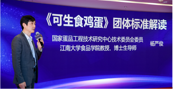 国家蛋品工程技术研究中心技术委员会委员、江南大学食品学院教授、博士生导师杨严俊教授对《可生食鸡蛋》团体标准进行了专业解读。他表示,此次团体标准由产(生产企业)、学(学术机构)、研(研究机构)、商(零售渠道)共同参与制定,经过国内蛋品行业专家严格审定,团体标准远高于目前的国标要求,已达到国际先进水平。