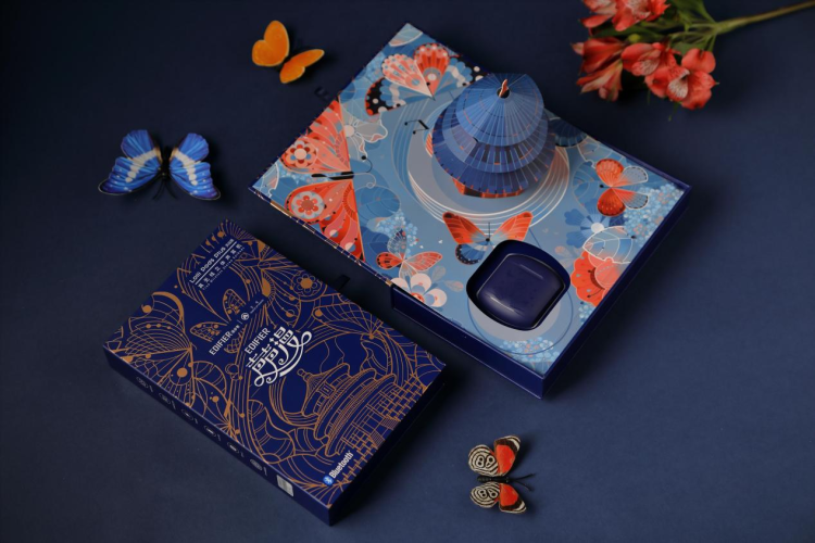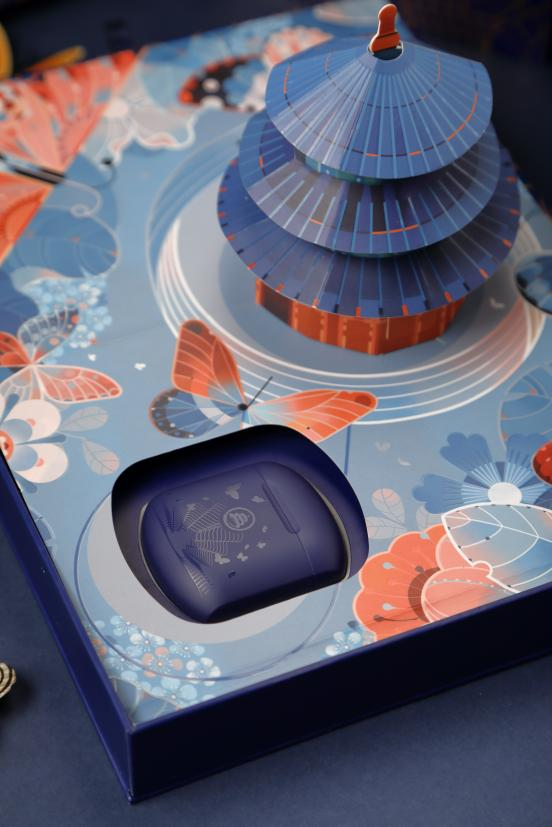 新IP“声声漫”的名字取自词牌名“声声慢”。在产品设计中将利用现代科技手段取自祈年殿顶部明代琉璃瓦的色值“天坛蓝”与天坛文化元素融入漫步者最新科技的耳机产品中,在包装上采取了礼盒包装与祈年殿立体纸雕工艺,这些点点滴滴的精心设计,即是对天坛历史文化的致敬和对漫步者品牌的信任,更是对传统文化之现代表达的一种推动,为传统物质文化遗产创作新的IP,打造文创经典,将优秀的文化遗产与优秀的产品相结合,通过文创的形式走进大众生活。