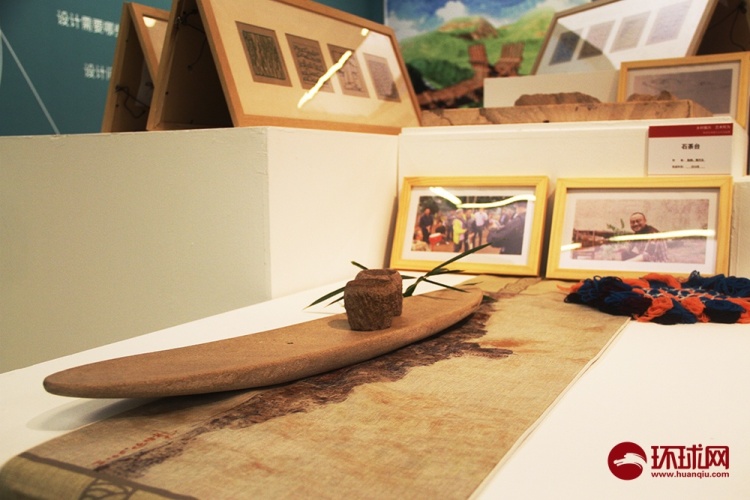 展厅中有一件古朴风格的石艺茶台,温和的颜色,粗粝的质感,茶杯与茶台相映成趣,颇有高山流水的诗意。这是一件具有樊家湾特色的“农创产品”。