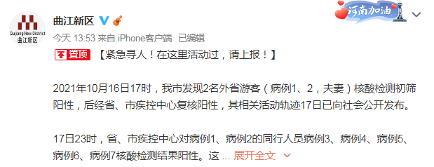 2021年10月16日17时,我市发现2名外省游客(病例1、2,夫妻)核酸检测初筛阳性,后经省、市疾控中心复核阳性,其相关活动轨迹17日已向社会公开发布。