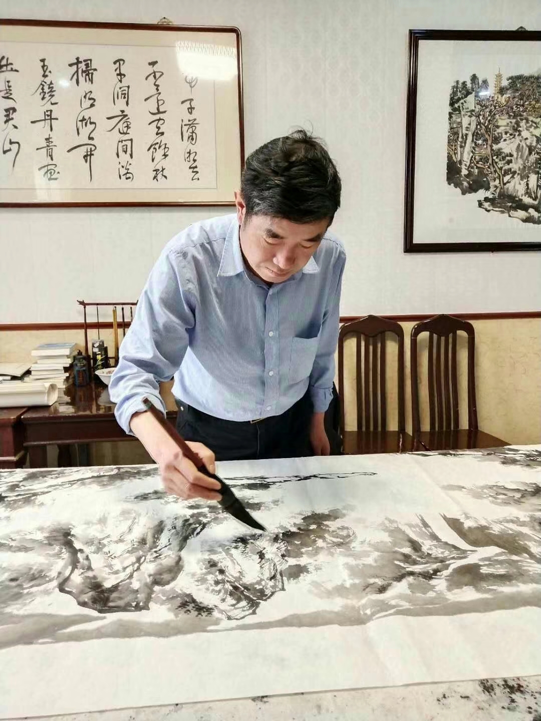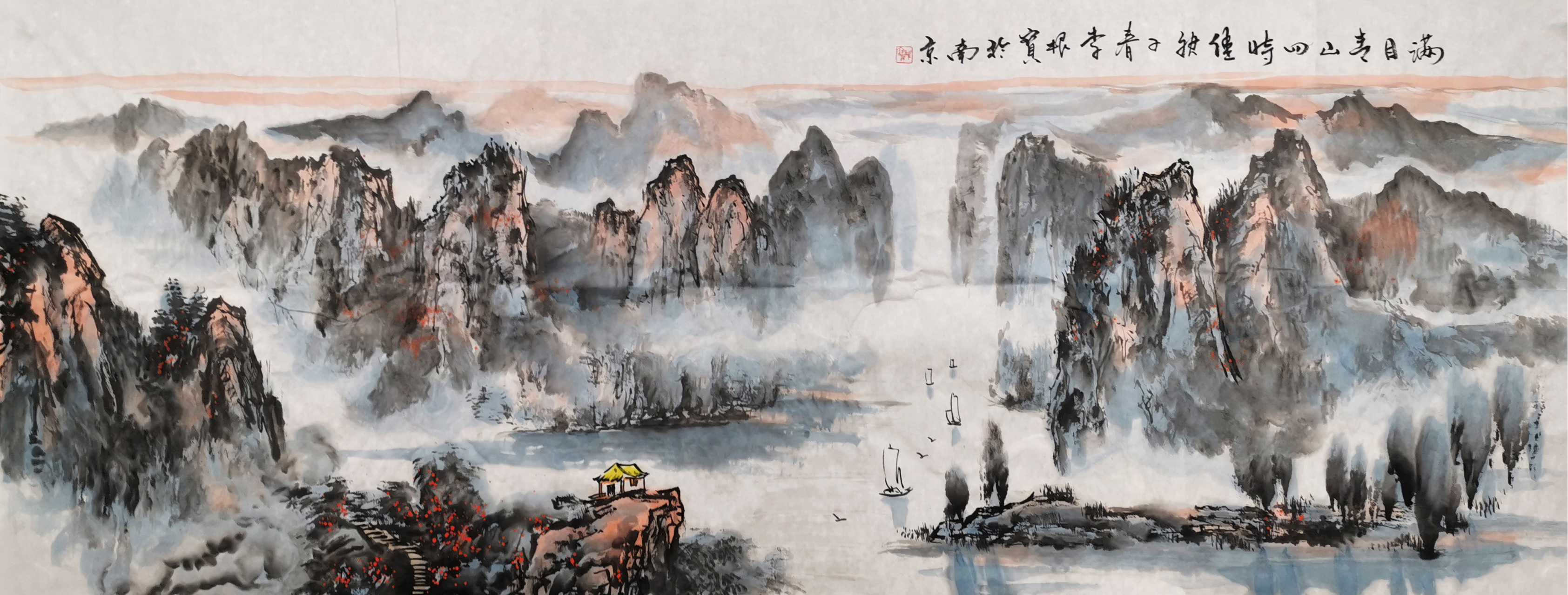 李根宝生长在巍巍钟山,虎踞龙蟠的扬子江畔。靠山吃山,靠水吃水,李根宝山也靠,水也靠,山有仙气灵气,水有运气财气,而李根宝更有福气。佛光普照,全国各大寺庙如南京栖霞寺、南京清凉寺、南京金光禅寺、衡水天宁寺等都珍藏了李根宝的山水画,佛缘佛乐,有佛护佑,李根宝的山水画突飞猛进,已经成为金陵一绝。