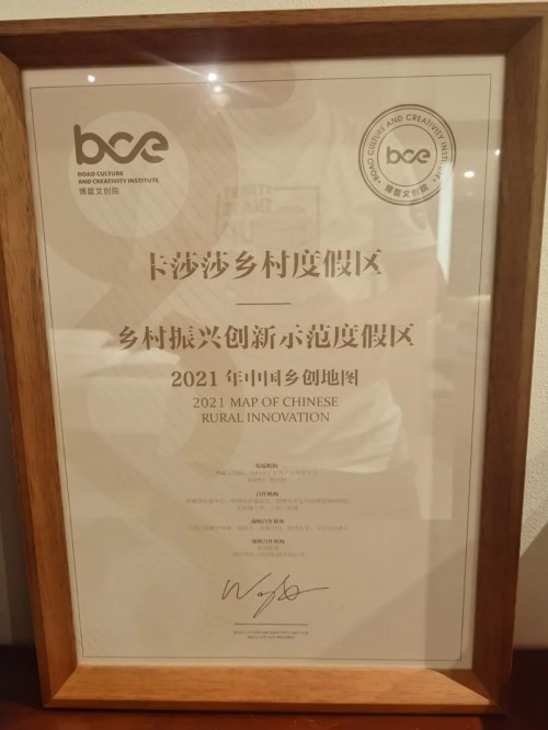 2021年10月1日刚刚开业的卡莎莎乡村度假区,在本次颁奖礼中荣获“乡村振兴创新示范度假区”称号。