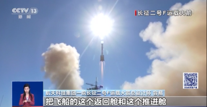 航天科技集团一院长征二号F运载火箭总设计师 容易:这个逃逸塔就是为了保障航天员的安全性,专门设立的这么一个部件或者叫一个系统。它是在上升段火箭发现重大故障,那么这个时候有逃逸系统把飞船的返回舱和推进舱要给它迅速地拉离故障的火箭,来保障航天员的安全。