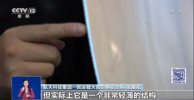 航天科技集团一院运载火箭总体设计师 张博戎:咱们直观来看,火箭它其实是钢筋铁骨的这样的一个架构,但实际上它是一个非常轻薄的结构,为什么做得这么薄?就是希望火箭能够尽一切的可能去减轻它的结构的重量,因为结构重量每轻一分,火箭的运载能力可能会大一点点。