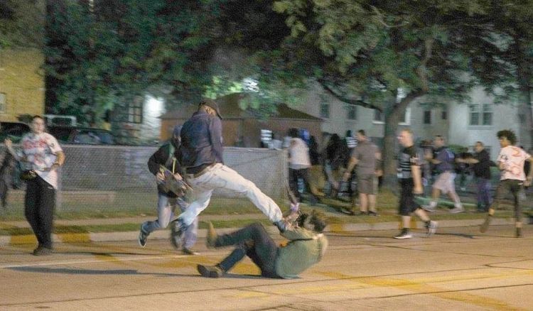 2020年8月25日晚,基诺沙继续骚乱,持枪的里滕豪斯就与抗议者发生了冲突,似乎落单的他,遭到一群抗议者追打。