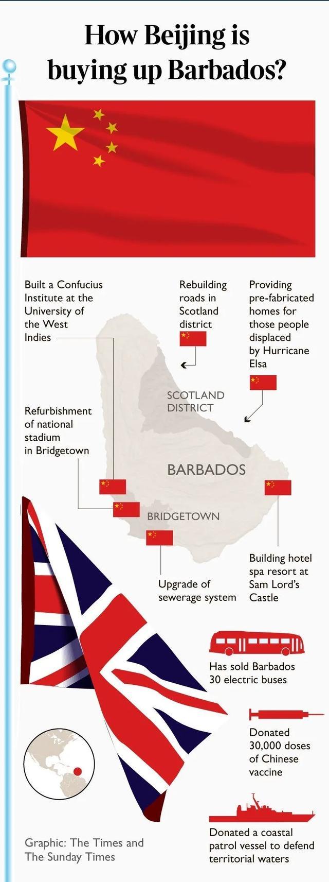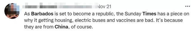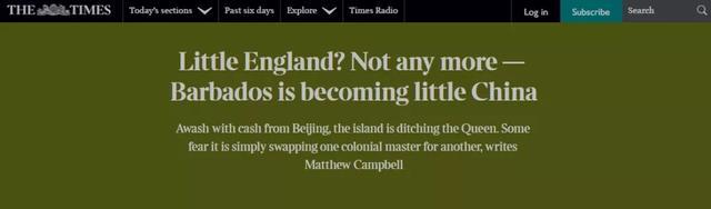 于是,英国人心里有些不爽了,《泰晤士报》发出了巴巴多斯不再是他们的“小英格兰”的感慨,同时一如往常地试图将问题“甩锅”给中国。