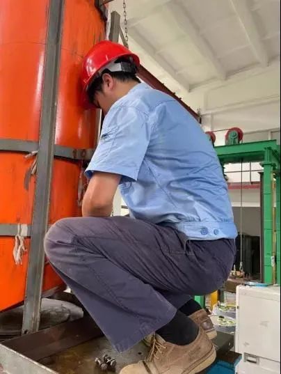 8月,国内首例索鞍一体足尺模型疲劳试验在七〇二所顺利开展。水面结构实验室疲劳试验团队成员们不畏酷暑、连续奋战,每天工作十余小时,即使汗流浃背仍然全神贯注地操作安装。