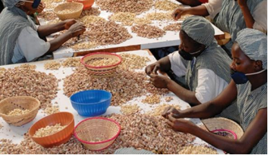 几内亚比绍目前是世界上最大的腰果原料生产国之一。十多年来,腰果在几内亚比绍经济中的重要性不断提高,就税收而言,出口总收入的95%来自于腰果,75%的农村家庭也从事腰果生产行业。腰果树早在6世纪就由葡萄牙人带入该国,但直到20世纪80年代中期才得到有效开发,因此,该国现在专注于生腰果的生产和销售。2013年,腰果出口额占该国出口总额的87.7%,这反映了自20世纪90年代末以来该行业的长势。腰果主要在村庄里由农民小规模种植,大约85%的农村人口都依赖腰果种植,因此,因疾病导致的作物歉收会影响数十万公民。对于巴兰塔人这样的非穆斯林族群,腰果生产提供了两种收入来源,即坚果和酒。在腰果价格较低的年份,用苹果汁酿成的腰果酒带来的收入比腰果高。