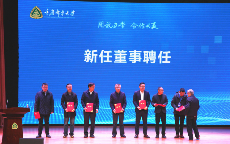 副校长许光洪介绍了学校增补和调整董事的情况。据介绍,重庆邮电大学增补了5家单位进入第三届董事会,分别是航天新通科技有限公司、阿里云计算有限公司、芯讯通无线科技(上海)有限公司、大陆汽车研发(重庆)有限公司、中冶赛迪重庆信息技术有限公司。董事会主席邬贺铨为到场的新任董事颁发了聘书。至此,学校董事单位增至78家。