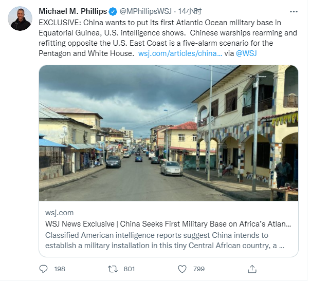 他显然是了解非洲事务的,但他还是这么写了,而结果显示,这篇特稿写得“很成功”,在推特上引起的热度远远高于他的其他作品 ,大概现在在美国任何与“中国威胁论”沾边的内容都是“流量密码”。