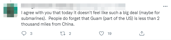 “美国在关岛的军事基地离中国可不到2000英里。”