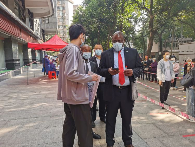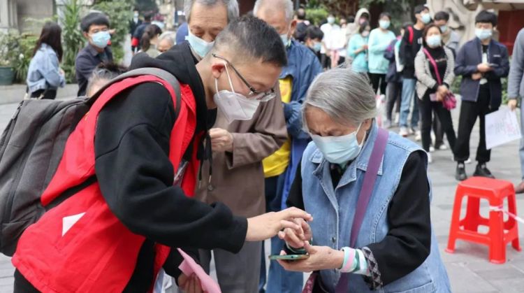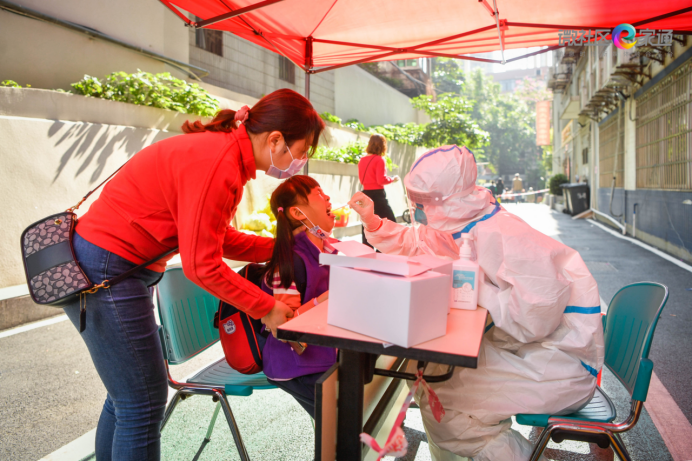“年满70岁的老人可以走绿色通道进行核酸检测。” 在越秀区淘金路36-38号旁边小广场的核酸检测点,来自中山大学博士三年级的志愿者李庚不时重复着这样的提示。“无论我作为一名博士生还是一名街道实习生,我都应该贡献自己的微薄之力。”