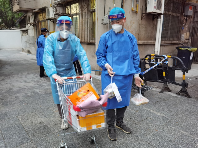 街道的党员干部、志愿者们为居民们联系超市,做好生活物资调配供应; 同时为管控区内30名老人、病患、残疾人等需关爱人群做好了生活和就医服务保障。