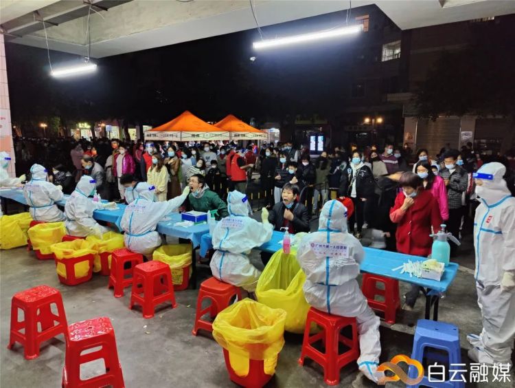 医护人员也通宵工作在核酸检测一线。 12月3日晚10点,广中医一附院白云医院派出第一批核酸采样队伍31人前往均禾街,凌晨2点,派出第二批核酸采样队伍20人前往新市街。12月4日早上8点,广中医一附院白云医院再次派出12人前往均禾街,早上10点,派出10人前往新市街。
