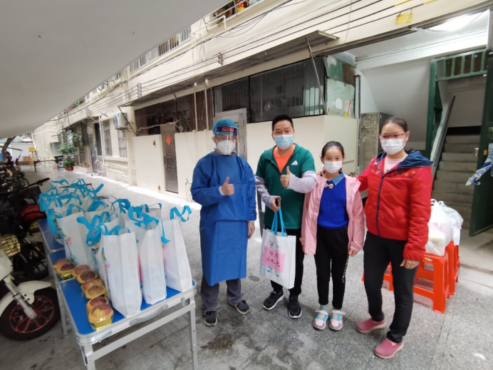 为了感谢管控区居民对防疫工作的支持和配合,华乐街管控区物资组和党员志愿者为居民们派发防疫小礼包。小小的防疫礼包,装着满满的爱。居民纷纷点赞:这个苹果,真甜!