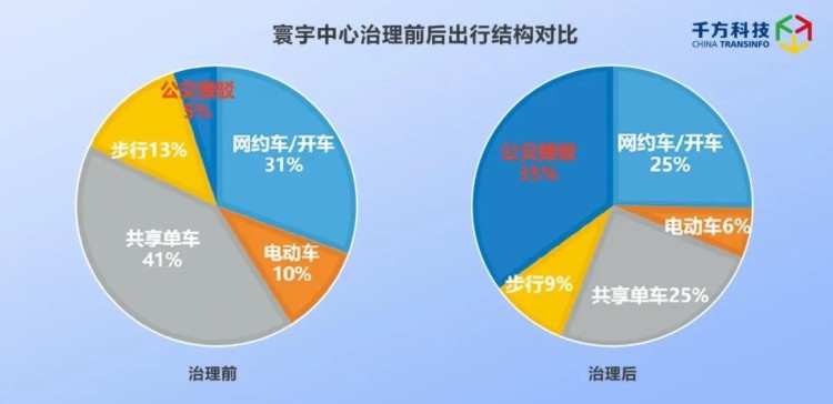 以杭州江陵路地铁站治理方案为例,江陵路地铁站客流从60000人次/天提升至69000人次/天,客流提升15%;附近地面公交线路,接驳专线客流提升1300人次/天,常规公交客流提升600人次/天;附近园区出行结构优化,以寰宇商务中心为例,公共交通出行率从5%提升至35%。
