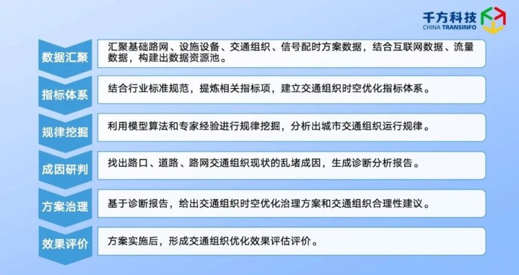 作为业界首个将时间、空间和交通组织同时做优化的智能分析平台,千方科技城市交通全时空优化智能应用平台通过整合交通大数据资源及科学的模型算法,计算得出城市交通运行规律,实现城市交通组织运行问题精准诊断、精细诊治、精确评价。