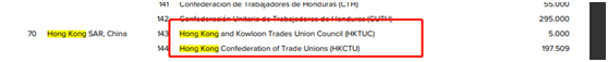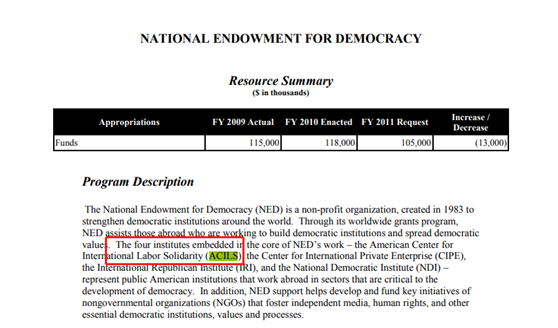 此外,美国政府文件自己都公布了,实际操盘“国际工会联合会”的美国国际劳工团结中心,每年都在美国国家民主基金会那里拿钱办事。