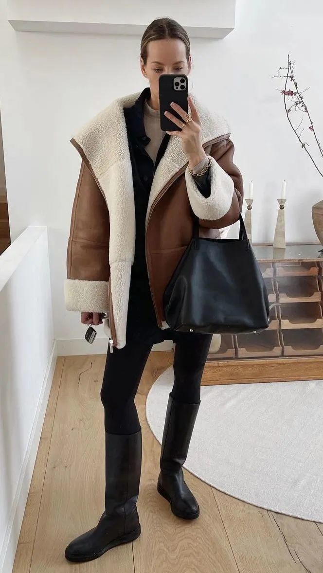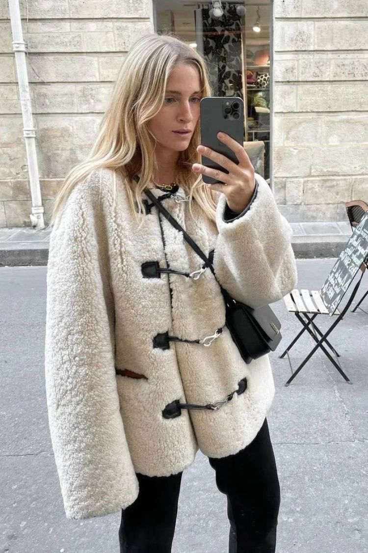 真的遇上了大降温,还可以把长款的毛呢外套换成更厚实的羊羔毛外套,这个组合即使在北方也能抗住寒风,保暖性完全不耽误~