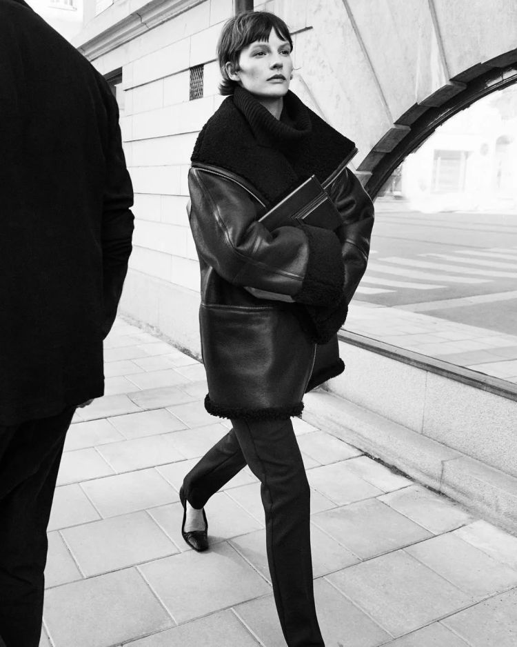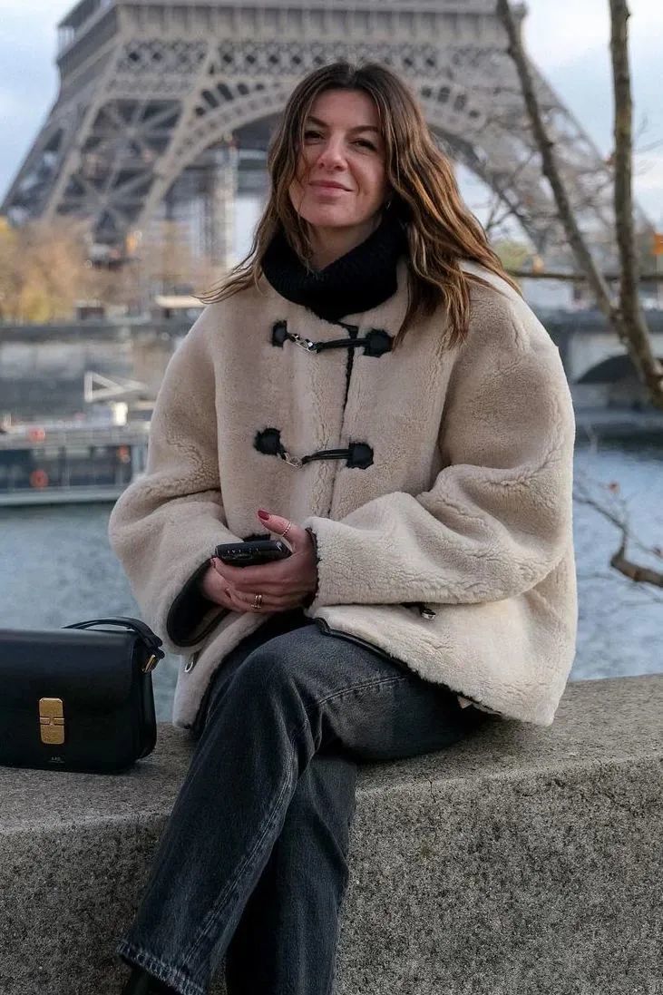 Totême这件毛绒外套今年就好火,穿它的博主大多都是搭配一条简单利落的牛仔裤就轻松出门,还是上松下紧的搭配思路保持利落风格。