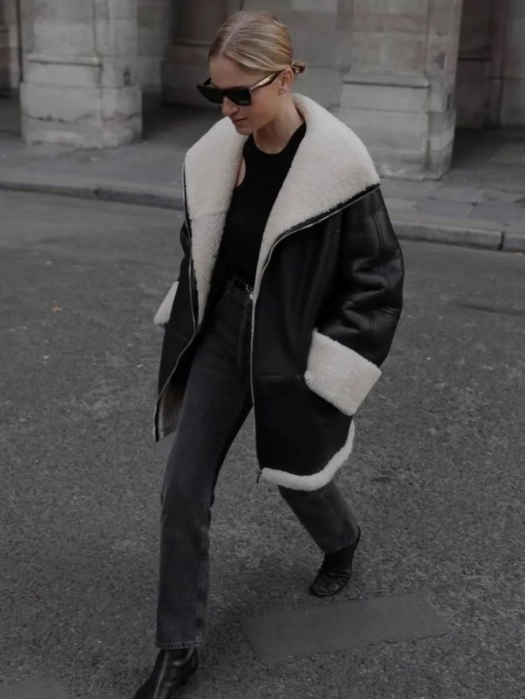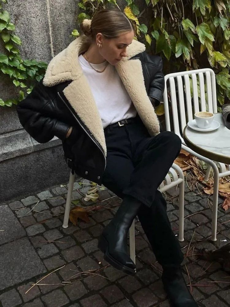 不仅是皮毛一体的夹克,这两年热度不减的泰迪熊外套和羊羔毛外套也可以用上这个套路。
