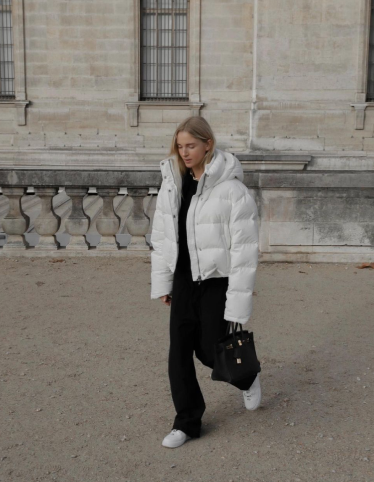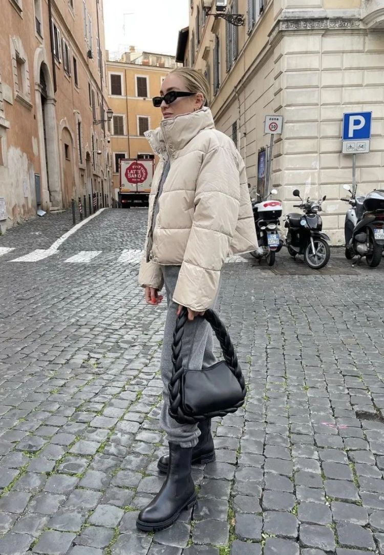 搭配短款羽绒服的下装有很多,但如果你现在刷任何ins的穿搭,几乎满眼都是阔腿裤……